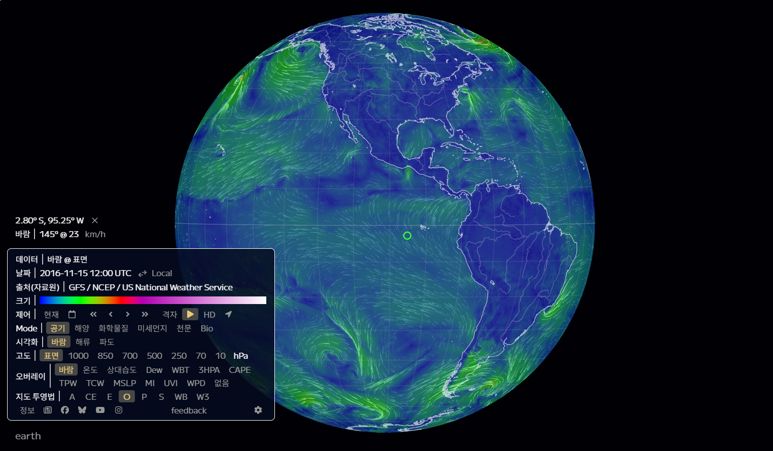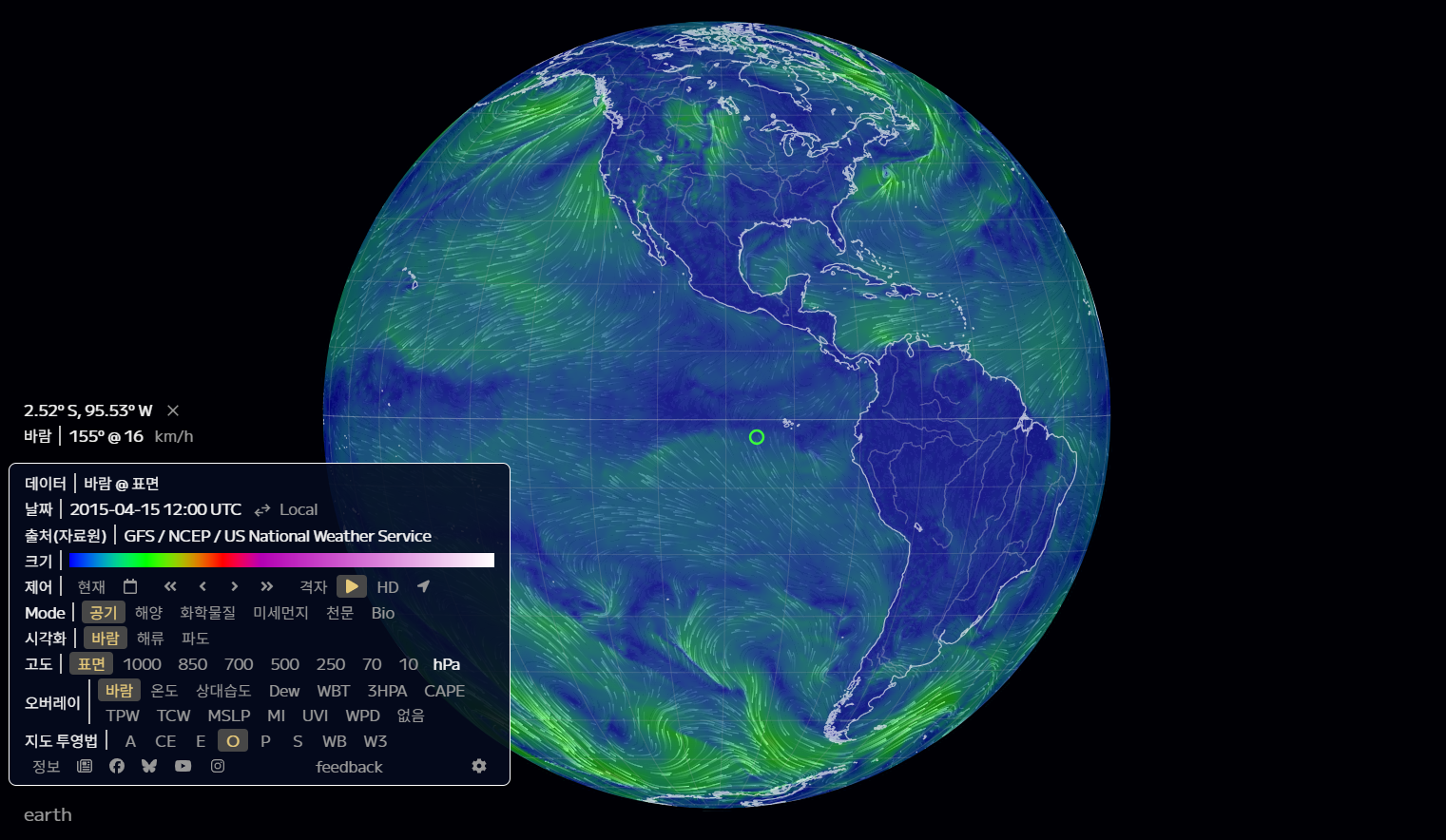 earth :: 전세계의 바람, 날씨, 바다 상태를 보는 지도